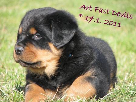 Ve čtvrtek od nás odešlo první štěňátko byl to ART FAST DEVILS alias Véna. Bude se nám po něm stýskat a snad se má u nových páníčků dobře. Bude bydlet v Jablůňkově na severní moravě a bude se mít určitě dobře, doma si užije spoustu zvířátek za sousedním plotem jsou pštrosi, klokani a kozy. Očekáváme brzy nějaké zprávy.